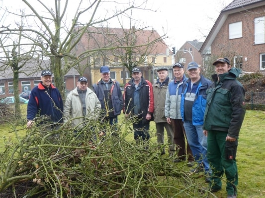 Im zeitigen Frühjahr bei „offener“ Witterung (d.h. frostfrei) werden die Obstbäume geschnitten: am Backhaus, in der Streuobstwiese im Hangkamp und im versteckt liegenden Biotop zwischen dem Garten der Familie Jungilligens und dem Friedhofsgelände. Häufig kann der Heimatverein einen Fachmann gewinnen, der alle Interessierten den richtigen Schnitt erklären kann.