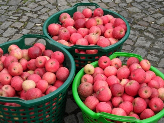 Am besten eignen sich gemischte Apfelsorten (es ist immer wieder überraschend, wie viele verschiedene Apfelsorten so zu Tage kommen!).